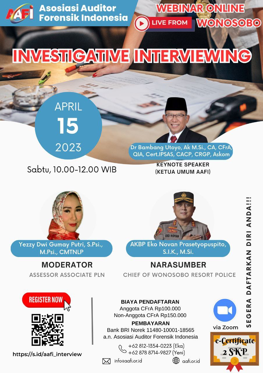 Asosiasi Forensik Auditor Indonesia (AAFI YUNERI) mengundang Bapak/Ibu dalam Webinar Online dengan Tema INVESTIGATIVE INTERVIEWING